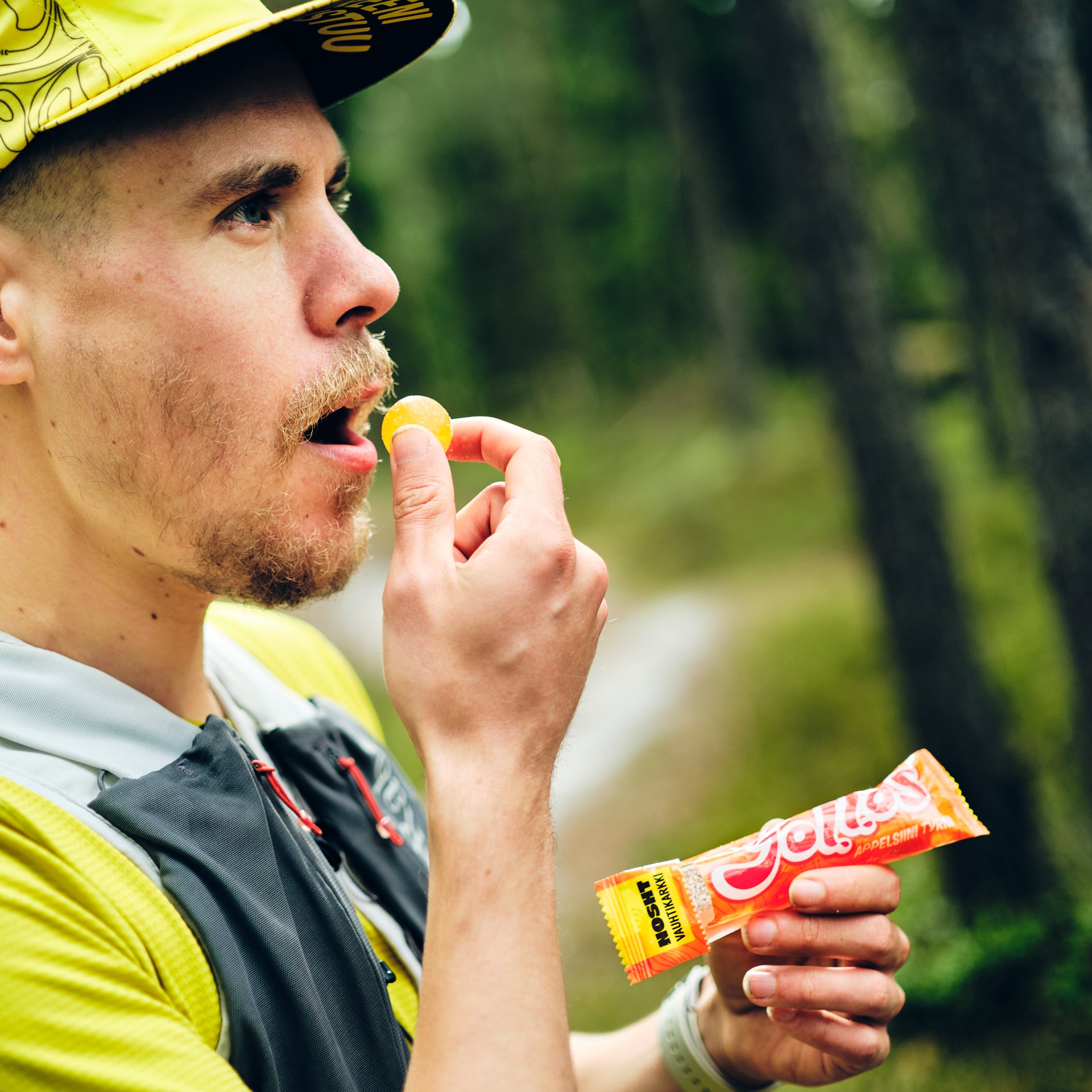 "Pidän energiatasoa yllä vauhtikestävyystreenin aikana jollos vauhtikarkeilla. Kiva tapa tutustua eri makuihin. Kaikki maistuvat ja treeni sujuu." - Kristiina