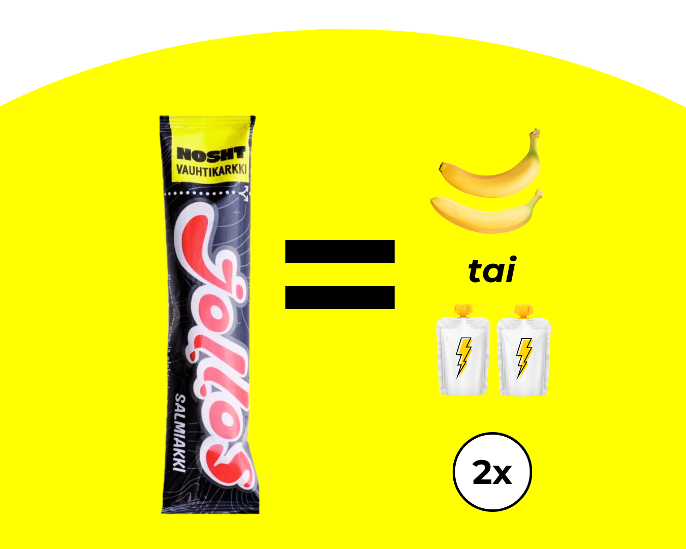 1. Yksi Jollos = 2 banaania tai 2 energiageeliä